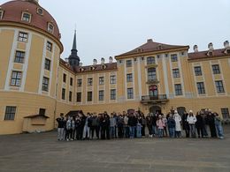 V pátek 5. prosince jsme se vydali na adventní výlet do Německa. Naší první zastávkou byl zámek Moritzburg, kde jsme absolvovali prohlídku zaměřenou na slavnou pohádku Tři oříšky pro Popelku. Prošli jsme si místa, kde se film natáčel, navštívili jsme speciální expozici věnovanou této pohádce, a dokonce jsme si mohli vyzkoušet i některé kostýmy. Viděli jsme také lokace natáčení přímo v areálu zámku, takže jsme si připadali, jako bychom se ocitli v pohádkovém světě.