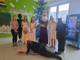 Netradičně už ve čtvrtek 4. prosince k nám do školy opět zavítal Mikuláš. Žáci a žákyně devátých tříd si připravili program pro své mladší kamarády z prvního stupně. Mikuláš měl po svém boku několik čertů a čertic a samozřejmě také anděly, kteří pomáhali „uklidňovat“ situaci.